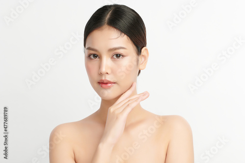 Beautiful young asian woman with clean fresh skin on white background, Face care, Facial treatment, Cosmetology, beauty and spa, Asian women portrait.