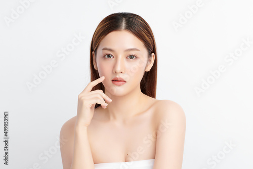 Beautiful young asian woman with clean fresh skin on white background, Face care, Facial treatment, Cosmetology, beauty and spa, Asian women portrait.