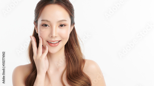Beautiful young asian woman with clean fresh skin on white background, Face care, Facial treatment, Cosmetology, beauty and spa, Asian women portrait.