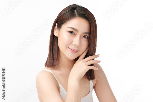 Beautiful young asian woman with clean fresh skin on white background, Face care, Facial treatment, Cosmetology, beauty and spa, Asian women portrait.