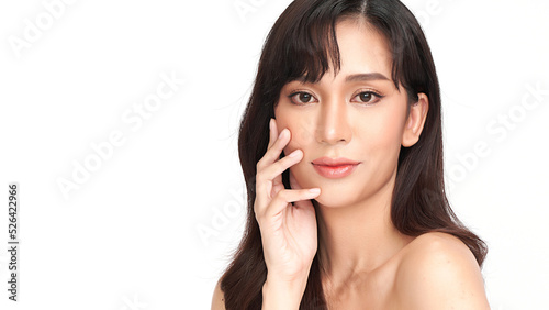 Beautiful young asian woman with clean fresh skin on white background, Face care, Facial treatment, Cosmetology, beauty and spa, Asian women portrait.