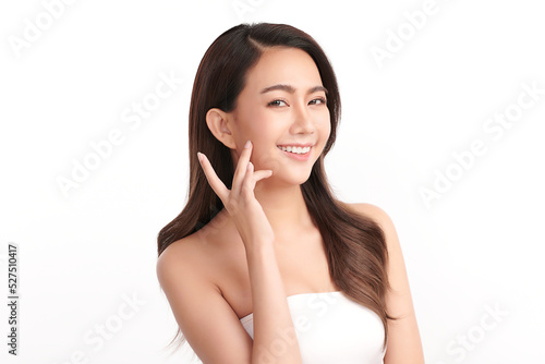 Beautiful young asian woman with clean fresh skin on white background, Face care, Facial treatment, Cosmetology, beauty and spa, Asian women portrait.