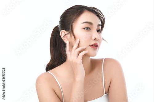 Beautiful young asian woman with clean fresh skin on white background, Face care, Facial treatment, Cosmetology, beauty and spa, Asian women portrait.