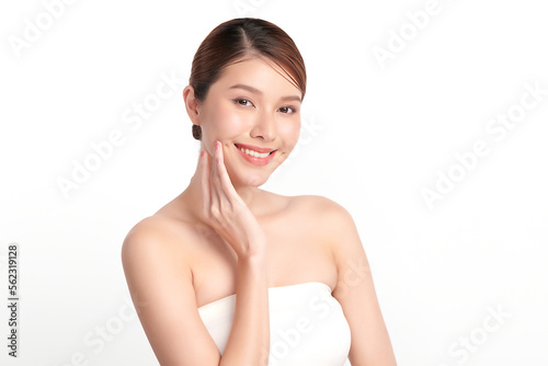 Beautiful young asian woman with clean fresh skin on white background, Face care, Facial treatment, Cosmetology, beauty and spa, Asian women portrait.