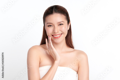 Beautiful young asian woman with clean fresh skin on white background, Face care, Facial treatment, Cosmetology, beauty and spa, Asian women portrait.