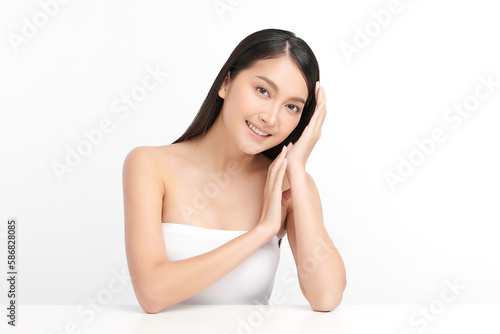 Beautiful young asian woman with clean fresh skin on white background, Face care, Facial treatment, Cosmetology, beauty and spa, Asian women portrait.