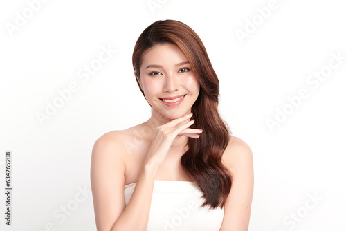 Beautiful young asian woman with clean fresh skin on white background, Face care, Facial treatment, Cosmetology, beauty and spa, Asian women portrait.