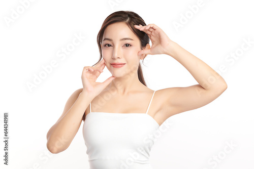 Beautiful young asian woman with clean fresh skin on white background, Face care, Facial treatment, Cosmetology, beauty and spa, Asian women portrait.