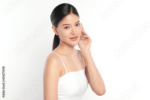 Beautiful young asian woman with clean fresh skin on white background, Face care, Facial treatment, Cosmetology, beauty and spa, Asian women portrait.