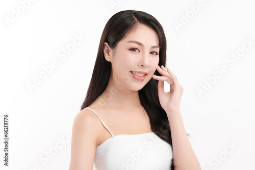 Beautiful young asian woman with clean fresh skin on white background, Face care, Facial treatment, Cosmetology, beauty and spa, Asian women portrait.