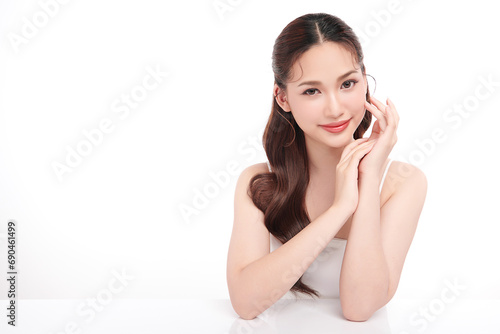 Beautiful young asian woman with clean fresh skin on white background, Face care, Facial treatment, Cosmetology, beauty and spa, Asian women portrait.