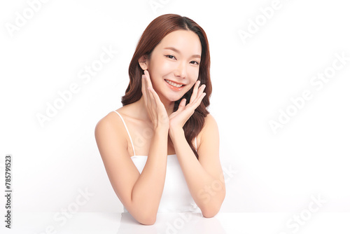 Beautiful young asian woman with clean fresh skin on white background, Face care, Facial treatment, Cosmetology, beauty and spa, Asian women portrait.