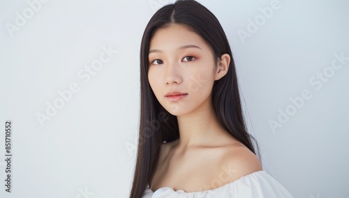 Beautiful young asian woman with clean fresh skin on white background, Face care, Facial treatment, Cosmetology, beauty and spa, Asian women portrait.