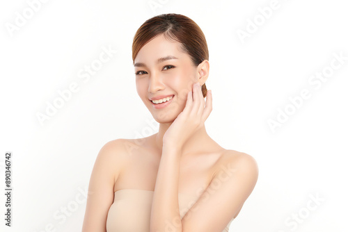 Beautiful young asian woman with clean fresh skin on white background, Face care, Facial treatment, Cosmetology, beauty and spa, Asian women portrait.
