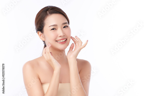 Beautiful young asian woman with clean fresh skin on white background, Face care, Facial treatment, Cosmetology, beauty and spa, Asian women portrait.