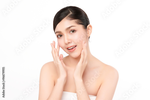 Beautiful young asian woman with clean fresh skin on white background, Face care, Facial treatment, Cosmetology, beauty and spa, Asian women portrait.