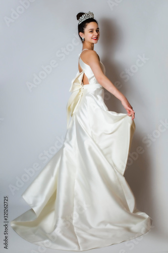 joy, celebration, style, marriage, dress, adult, caucasian, attractive, cheerful, bride, cute, married, wedding, clothing, stylish, gorgeous, smiling, romance, day, posing, ceremony, event, woman, studio, engagement, veil, girl, face, 1, decoration, brunette, fashion, isolated, beauty, white, happy, young, model, female, party, background, elegant, bridal, summer, luxury, hair, gown, people, smile