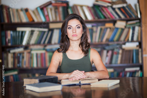library, woman, student, young, college, beautiful, reading, female, university, book, student, education, girl, happy, adult, studying, school, person, looking, portrait, attractive, literature, lifestyle, people, cognition, book, bookshelf, sitting, caucasian, beauty, study, brunette, woman, desk, teenage, working, academic, thinks, dream