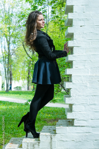 girl, beautiful, sexy, young, model, park, grass, tree, skirt, black, green