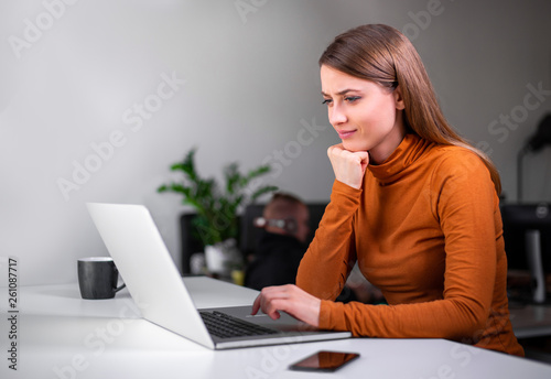 looking, worried, laptop, young, computer, woman, men at work, work, female, problem, bad, frustrated, people, sad, person, business, home, job, unhappy, freelancer, office, news, girl, desk, employee, student, upset, trouble, concerned, serious, electronic mail, negative, stressed