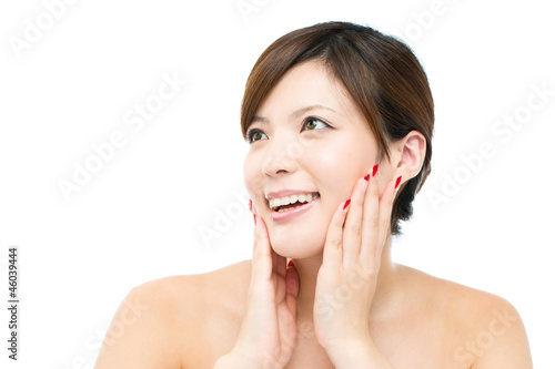 Beautiful young woman on white background. Portrait of asian.