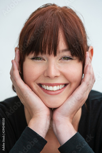 woman, female, girl, smiling, smile, laughing, happy, cheerful, honed, teeth, face, portrait, dental, brunette, redhead, beautiful, beauty, sexy, studio shot, young, model, mindfulness, young adult, missy, natural, relaxed, laugh, relaxing, happiness, gorgeous, attractive, pretty, hair, brown hair, green eye, eye, perfection, 20s, toothy, white background