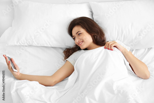 alarm, beautiful, bed, bedchamber, caucasian, mobile phone, cellular, clock, copy, cute, digital, display, early, girl, home, indoor, lying, mobile, morning, nightstand, number, 1, people, person, phone, pillow, relax, rest, resting, room, schedule, screen, sleep, sleepy, smartphone, snooze, snoozing, space, technology, time, timer, up, arousing, wake up, waking, woman, young