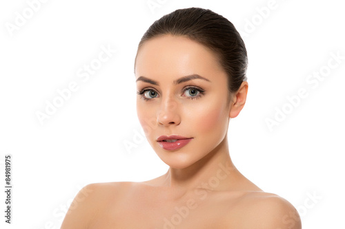 Beautiful Young Woman with Clean Fresh Skin close up..
