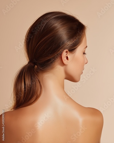 woman, beauty, hair, model, face, skin, fashion, profile, make-up, naked, coiffure, glamour, 1, person, brunette, people, care, smiling, body, studio, long, head, looking, smile, blond