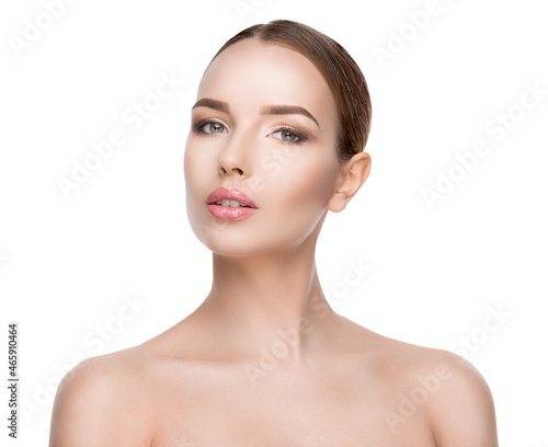 Beautiful Young Woman with Clean Fresh Skin isolated on white background
