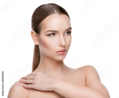 Beautiful Young Woman with Clean Fresh Skin isolated on white background