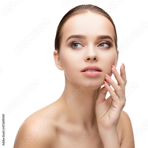 Beautiful Young Woman with Clean Fresh Skin isolated on white background