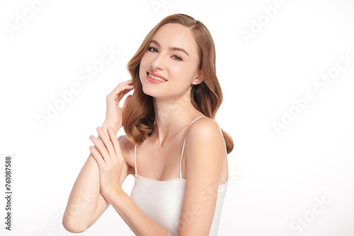 Beautiful young woman with clean fresh skin on white background, Face care, Facial treatment, Cosmetology, beauty and spa, women portrait.