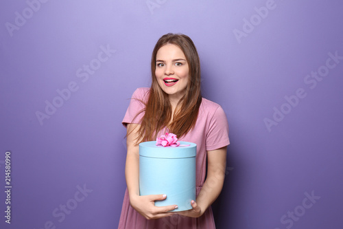 adorable, anniversary, appearance, attractive, background, beautiful, birthday, box, caucasian, celebrate, charming, clothes, colours, cute, dress, emotional, enjoy, event, fashion, female, fun, gift, girl, glamour, happy, healthy, holiday, lifestyle, model, modern, people, person, pink, portrait, present, pretty, purple, style, surprise, trend, trendy, woman, young