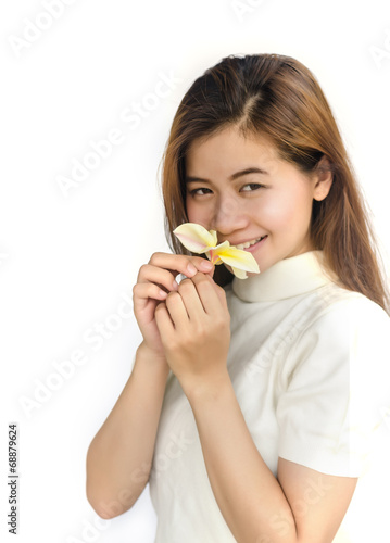 background, beautiful, beauty, blooming, blossom, body, botany, care, face, female, flower, frangipani, fresh, girl, hand, happy, health, healthy, lifestyle, model, natural, nature, people, person, plumeria, portrait, pretty, relax, relaxation, romance, romantic, scent, skin, tropical, wellness, white, woman, young