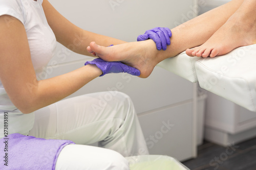 Beautifully cherish female foot in the hand of the masseur