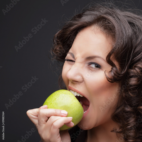 girl, apple, food, fruit, smiling, lifestyle, snack, portrait, cute, beautiful, healthy, beauty, brown, people, hair, white, sweet, expression, happiness, caucasian, cheerful, diet, expressing, health, eating, juicy, shot, studio, closeup, smith, well-being, choice, enjoyment, face, candid, looking, positive, tasty, vegetarian, person