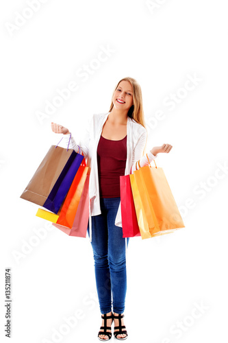 Beauty hhopping woman holding bags