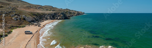 sea, ocean, crimea, panorama, landscape, car, travel, holiday, suv, auto, auto, automobile, offroad, road, land, offroad, extreme, expedition, adventure, traveling, coast, bank, shore, mountain, beautiful, nature, beach, summer, view, rock, scene, bay, water, season, day, beauty, horizontal