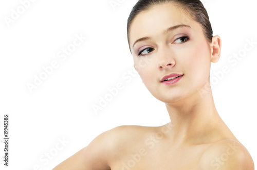 face, human, beauty, beautiful, 1, female, skin, caucasian, eye, portrait, young, person, adult, 20s, freshness, body, adolescence, head, only, clean, treatment, closeup, healthy, care, vitality, cheerful, sensuality, cosmetic, purity, perfection, complexion, glamour, lip, shoulder, woman, make-up, harmony, carefree, facial, studio, smile, white, isolated