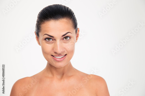 face, woman, skin, model, care, smile, young, girl, make-up, portrait, fashion, clean, white, fresh, freshness, closeup, background, hand, honed, caucasian, looking, skincare, isolated, charming, natural, attractive, adult, cosmetic, female, cute, lady, healthy, camera, shoulder, beauty, toothy, elegance, sensuality, beautiful, pretty, happy, spa, smiling, cheerful
