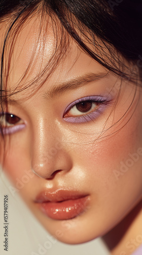 korean, woman, make-up, beauty, portrait, closeup, fashion, lavandula, glossy, skin, lighting, contemporary, aesthetic, cosmetic, model, expressive, style, elegance, radiant, glam, natural, allure, creativity, eyeshadow, trendy, youthful, flawless, salon, stylish, hair, artistry, cosmetic, chic, culture, emotion, inspiration