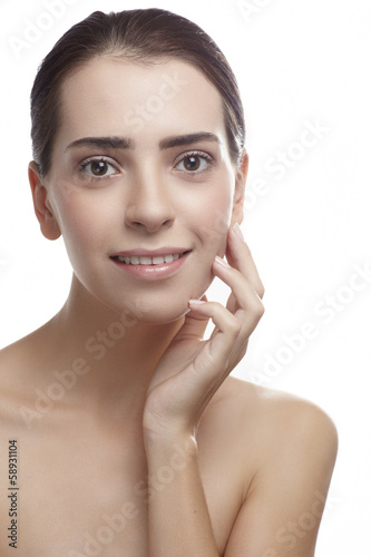 woman, face, beauty, skin, beautiful, model, white, background, care, portrait, young, clean, female, girl, natural, attractive, pretty, studio, facial, fashion, caucasian, hand, healthy, honed, brunette, woman, make-up, looking, youth, eye, cosmetic, head, person, face, smile, happy, emotional, smiling