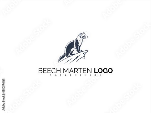 Beech Marten Logo Design in Stylish Black and White. Perfect for Wildlife Branding, Outdoor Product Merch, and Sustainable Nature Packaging Concepts.