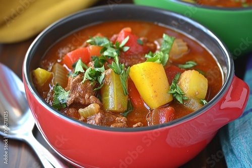 beef stew, red pepper, yellow pepper, parsley, comfort food, soup bowl, food, soup, stew, meat, vegetable, beef, meal, dinner, bowl, cookery, dish, carrot, vegetable, lunch, pork meat, healthy, chicken, tomatoes, onion, cooking, bean, epicure, hot, potato, sausage