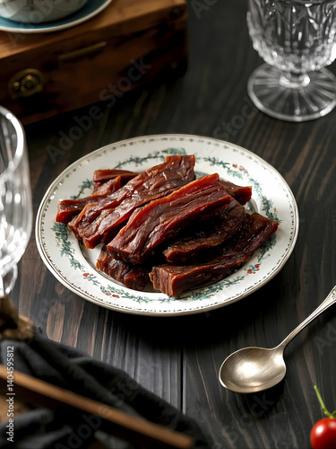 beef, jerky, gourmet food, delicious, snack, snack, specialty, fresh, food, diet, health, health food, organic food, afternoon tea, still life, illustration, meat, meal, plate, dinner