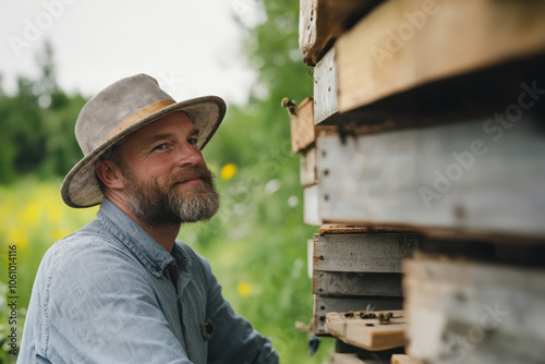 apiarist, apiary, apiculture, honey bee, nature, bee, honeycomb, rural, beehive, pollinator, nature scene, pollination, sunny day, countryside