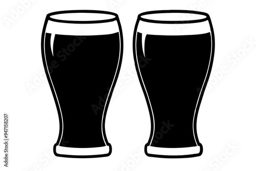 beer silhouette, Two glasses of beer, beer glass bottle icon symbol. beer vector illustration