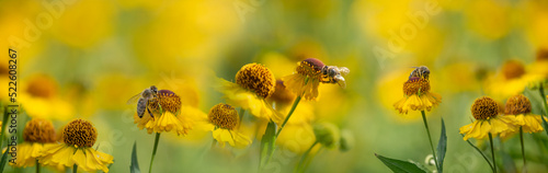 bees (apis mellifera) on helenium flowers - close up
