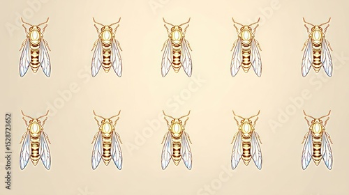 bee, pattern, insect, watercolor, pastel, beige, graphic, design, repeating, gold, wing, floral, illustration, symmetry, light, honey, background
